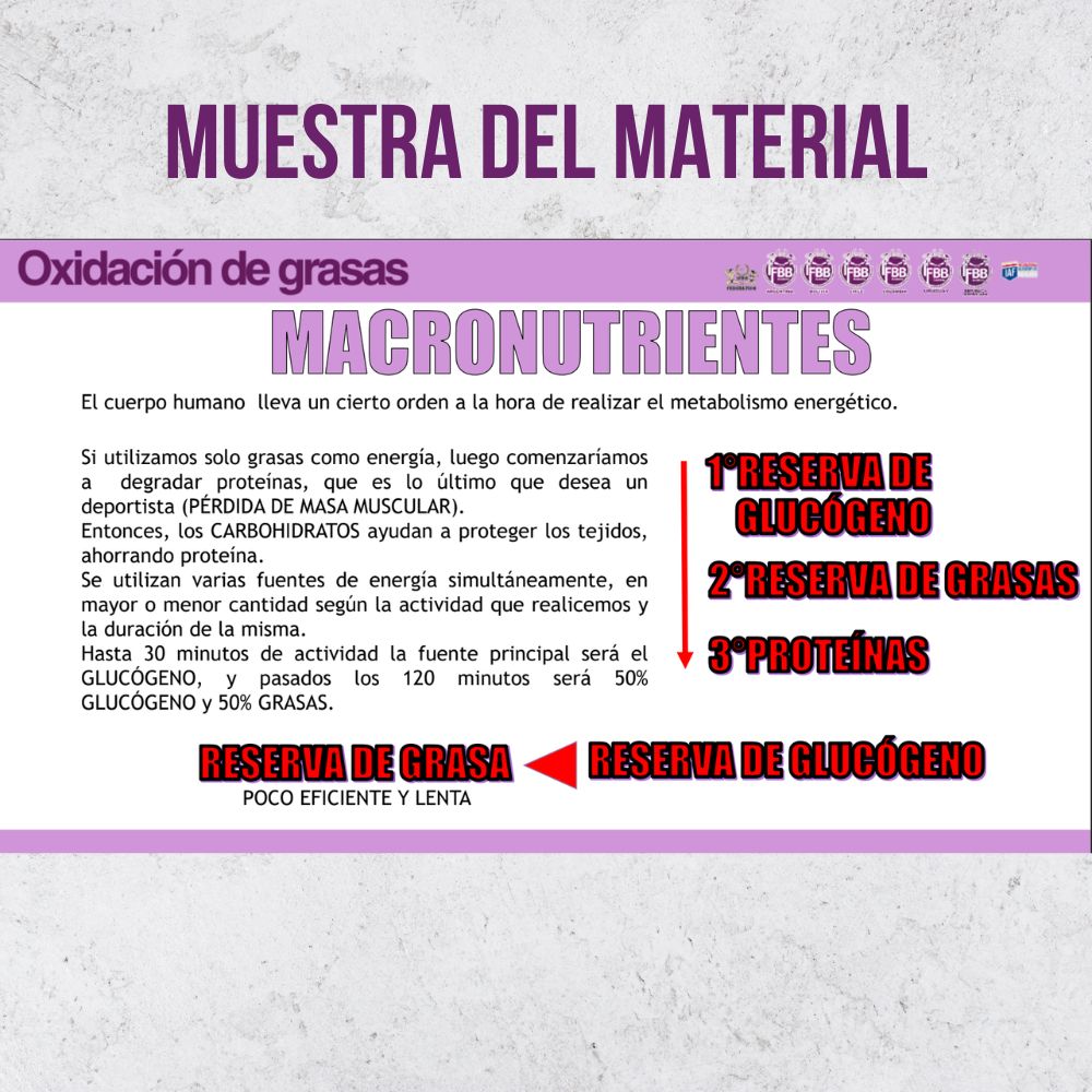 Este curso forma parte del programa oficial de la IFBB Academy Argentina y ofrece una comprensión integral sobre cómo el cuerpo utiliza la grasa como fuente de energía, abordando los mecanismos metabólicos, hormonales y nutricionales implicados en el proceso.