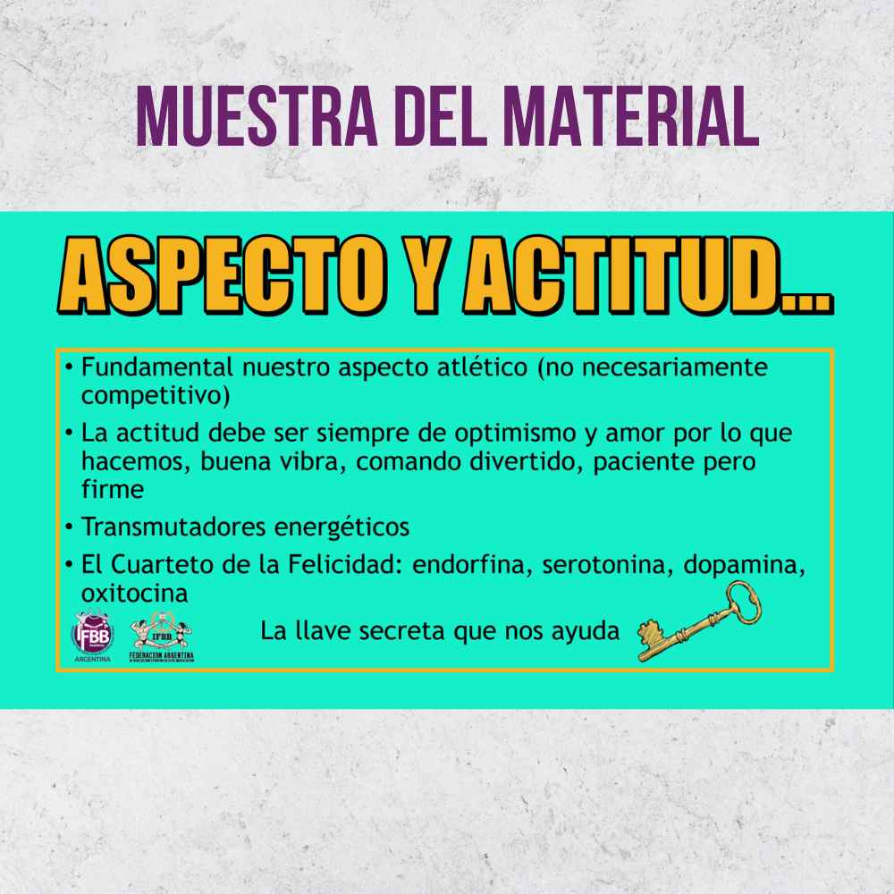 Este curso forma parte del programa oficial de la IFBB Academy Argentina y propone una mirada integral sobre la psicología aplicada al entrenamiento y la competencia, abordada desde la experiencia real de una atleta de alto rendimiento.